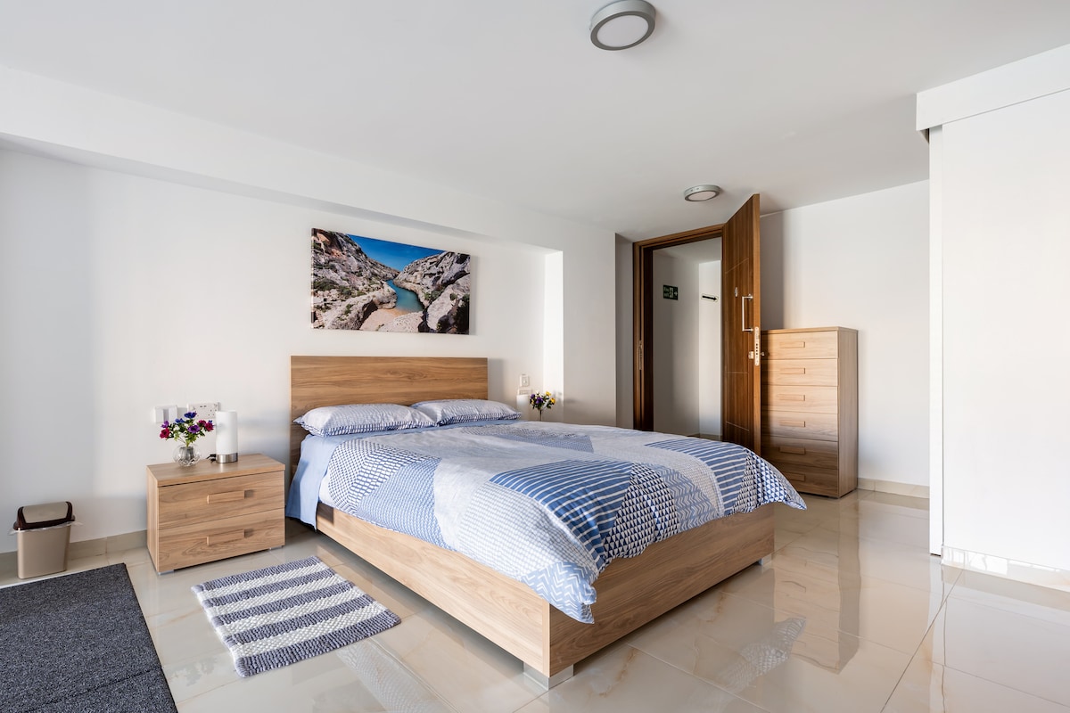 Jednosypialniane mieszkanie w centrum Bugibby (Triq San Pawl) — noclegi z łóżkiem queen size w popularnym kurorcie nadmorskim. Blisko promenady i plaży St Paul's Bay.