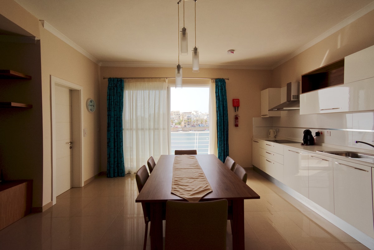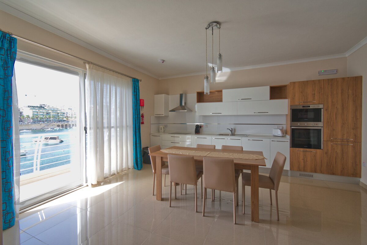 Noclegi na Malcie: Seafront Apartment - Wifi - Sleeps 5 - Fl2 czeka na Twoje rezerwacje. Dwie sypialnie dla 2 osób — wygodna opcja dla rodziny lub dwóch par. Dostępne online — sprawdź opinie i zarezerwuj z wyprzedzeniem.
