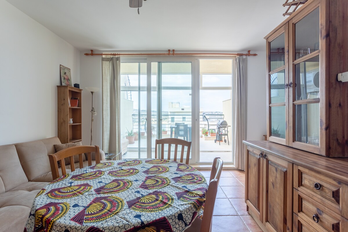 Apartament z widokiem na morze w Bugibbie z bezpłatną klimatyzacją. Dwie sypialnie dla rodziny lub dwóch par. Blisko nadmorskiej promenady i restauracji przy Zatoce Świętego Pawła.
